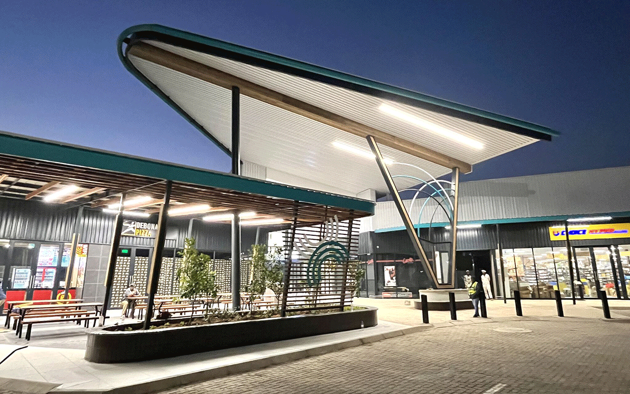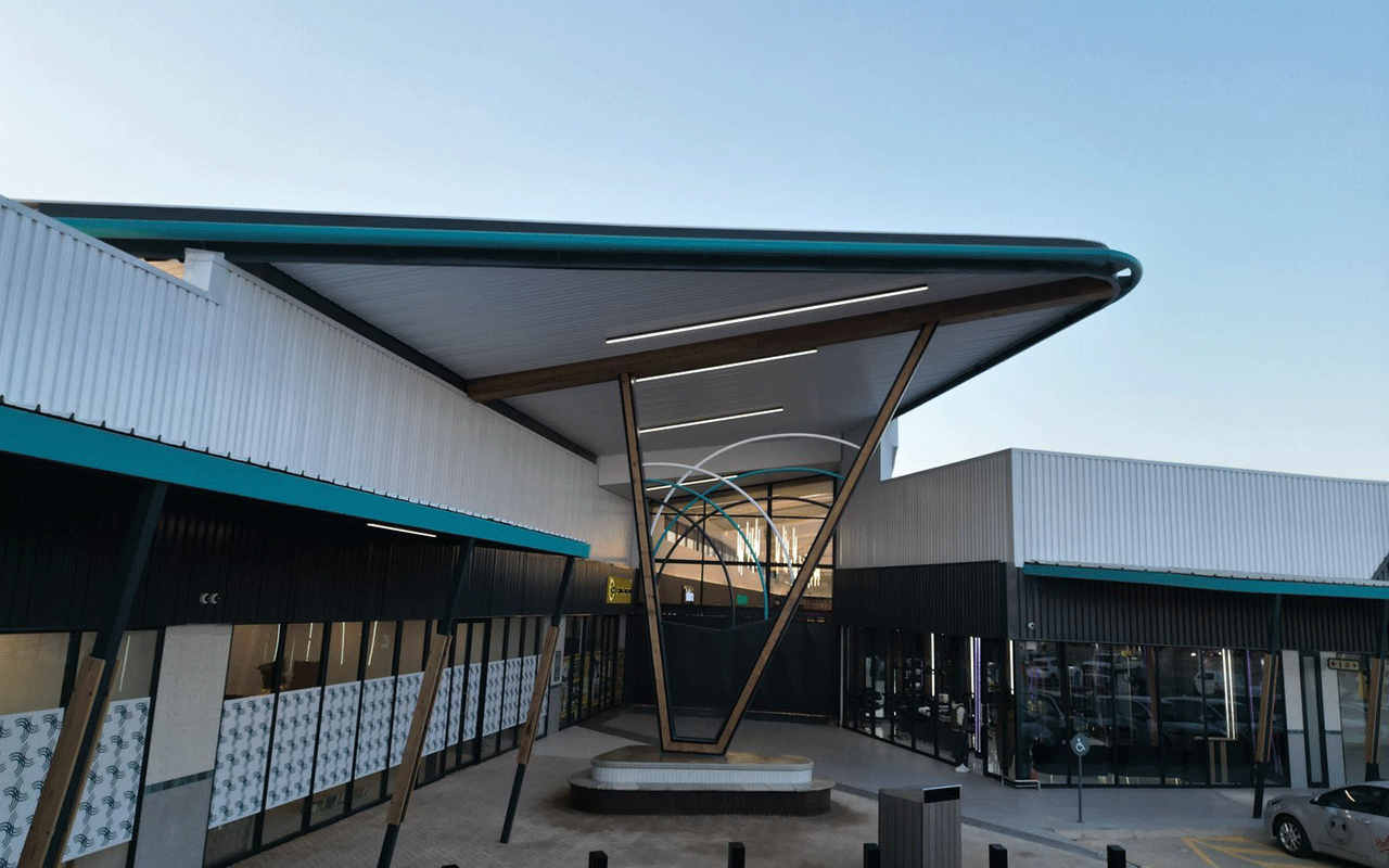 Leeuwfontein Crossing is a modern, rural retail centre located in Leeuwfontein, Limpopo. Developed by McCormick Property Development and designed by Living Planet Architects, the 10000m² community mall features 28 stores and was completed with future expansion in mind. Anchored by Shoprite and housing national brands like KFC, Ackermans, Pep, and Standard Bank, the R103 million development blends contemporary retail needs with iconic design elements — including MPD’s signature ‘Umhlanga Wave’ blue roof. The centre is managed by Exemplar REITail and represents another milestone in quality retail infrastructure delivered by Mike Buyskes Construction.